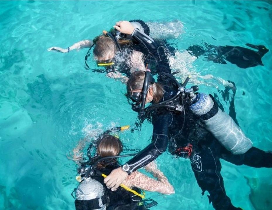 With Your Instructor A PADI Professional will fit you with scuba gear and explain how to use it. In a pool or calm water environment, you'll practice basic diving skills followed by free time to play underwater or go on a guided open water dive.