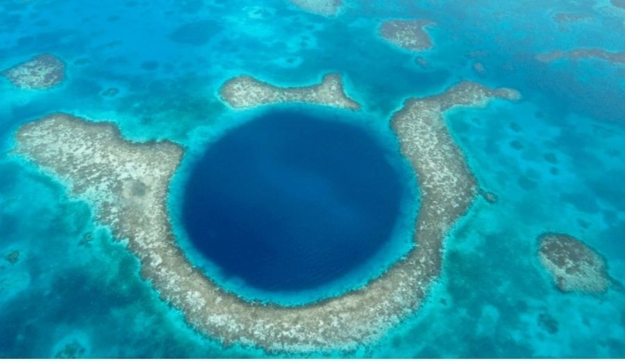 📍 The Great Blue Hole – Dive into this world-famous sinkhole (divers go down to 130ft, snorkelers stay at the surface!)